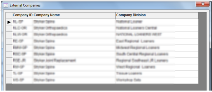 2. In the External Company Security screen, click the company lookup button to set up access to that company.