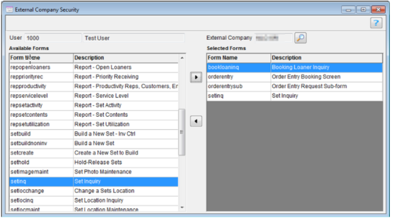 3. In the External Company Security screen, press the company lookup button and select an external company.