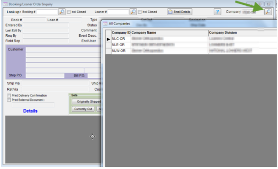 The Booking Loaner Inquiry screen’s Company ID lookup field now displays 3 companies that the user can switch to to view orders in that company.