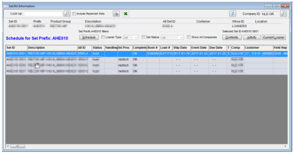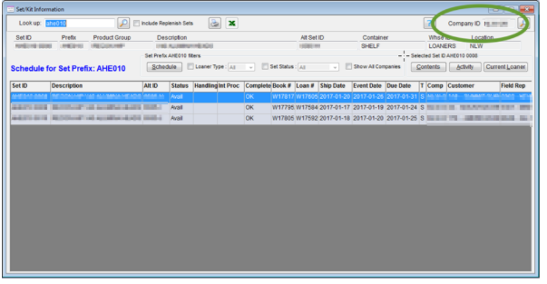 If the user wishes to see sets in a specific location, they would press the Company ID lookup and select the external company and enter the same set prefix in the lookup field.