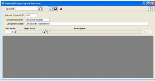 4. In the main Internal Processing screen, press the New button to create a new Internal Process. Enter a new Process ID, Short Description and Long Description. (These fields will appear in different parts of the program.) Press Save to save the new Process before entering individual steps in the detail section below.