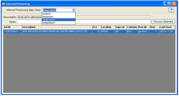 2. Sets can be moved to the next processing step in the Process > Internal Processing screen.